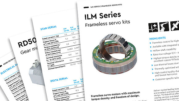 下载各类无框电机、带壳伺服电机、齿轮电机、安全制动器及编码器的独立数据表。